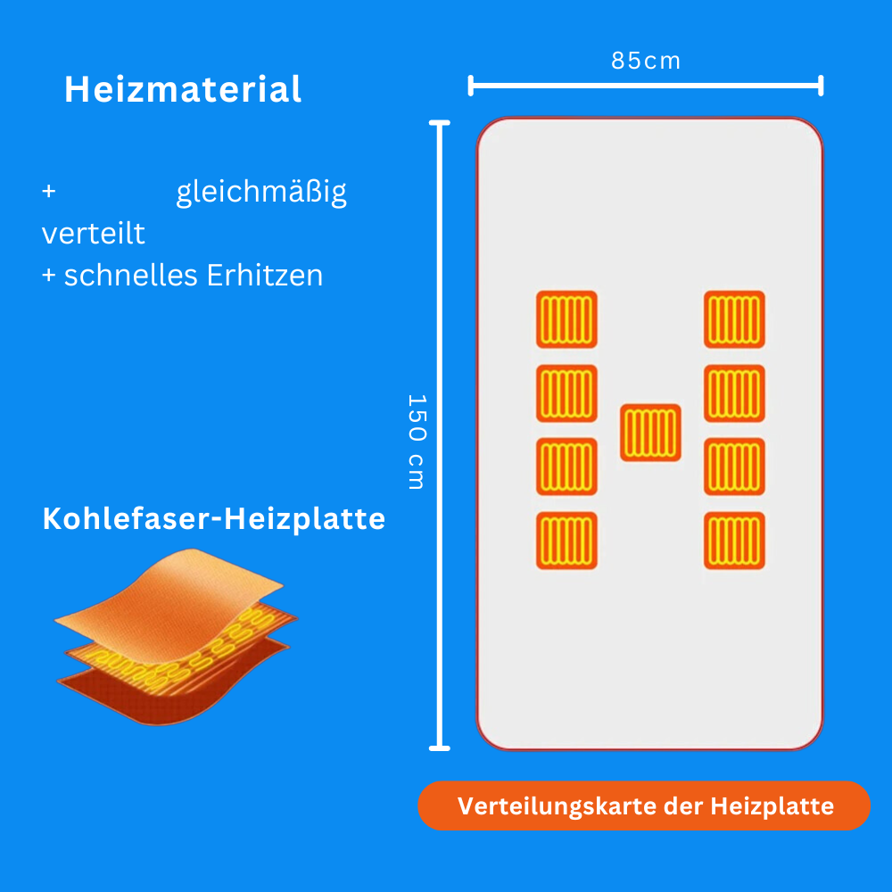 Du musst nicht mehr darauf warten, dass die Heizung vorheizt. Mit der Decke kannst du die Wärme per Knopfdruck in Sekundenschnelle fühlen und genießen!