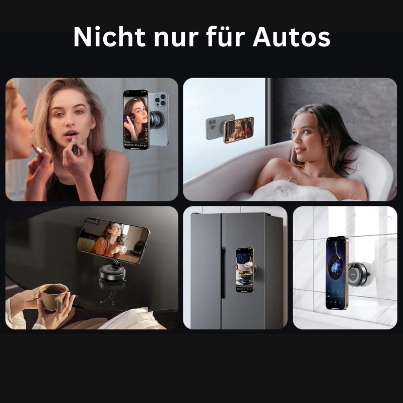Statt komplizierter Klemmen genügt ein Magnetkontakt. Dein Smartphone sitzt in Sekunden fest, und du sparst Zeit und Aufwand.