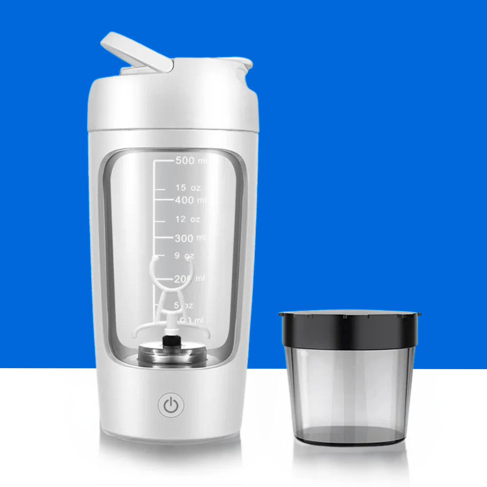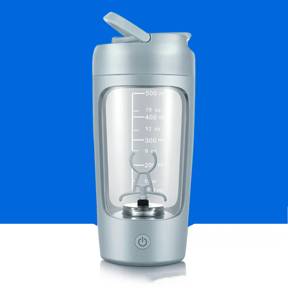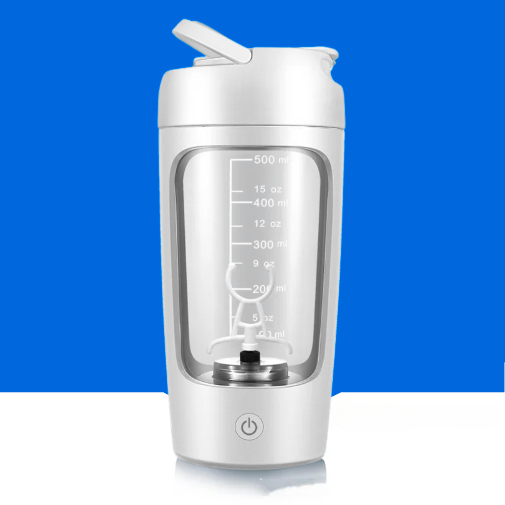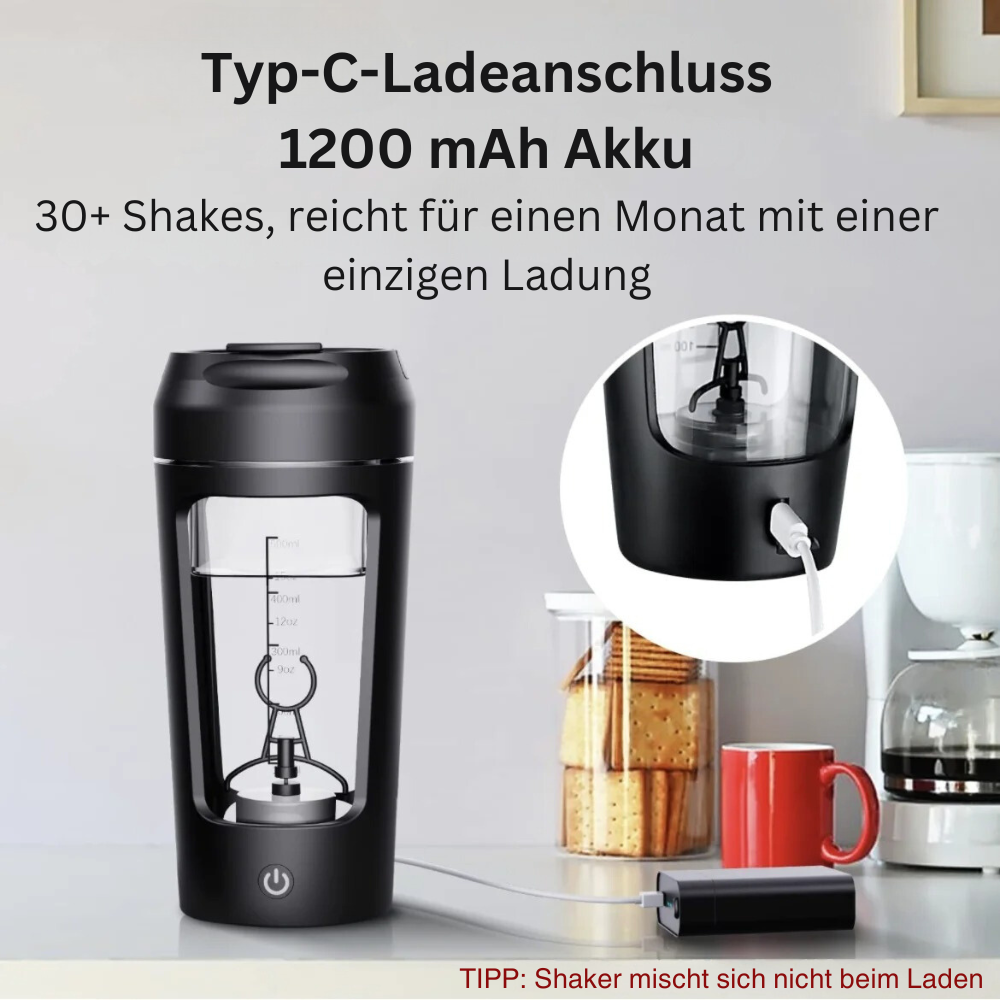Die Anwendung ist ziemlich simpel Vor der ersten Nutzung, den Shaker gründlich reinigen. Fülle deine Zutaten in die Flasche, verschließe sie fest und drücke den Ein-/Ausschalter 2 Sekunden lang gedrückt, um die Mischung zu starten. Mische für 15-20 Sekunden und überprüfe die Konsistenz. Nach Gebrauch kannst du die Flasche reinigen und an der Luft trocknen lassen. Bei leerem Akku einfach mit dem USB-Kabel aufladen!
