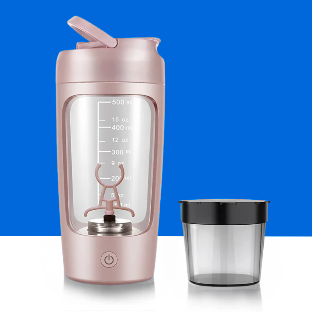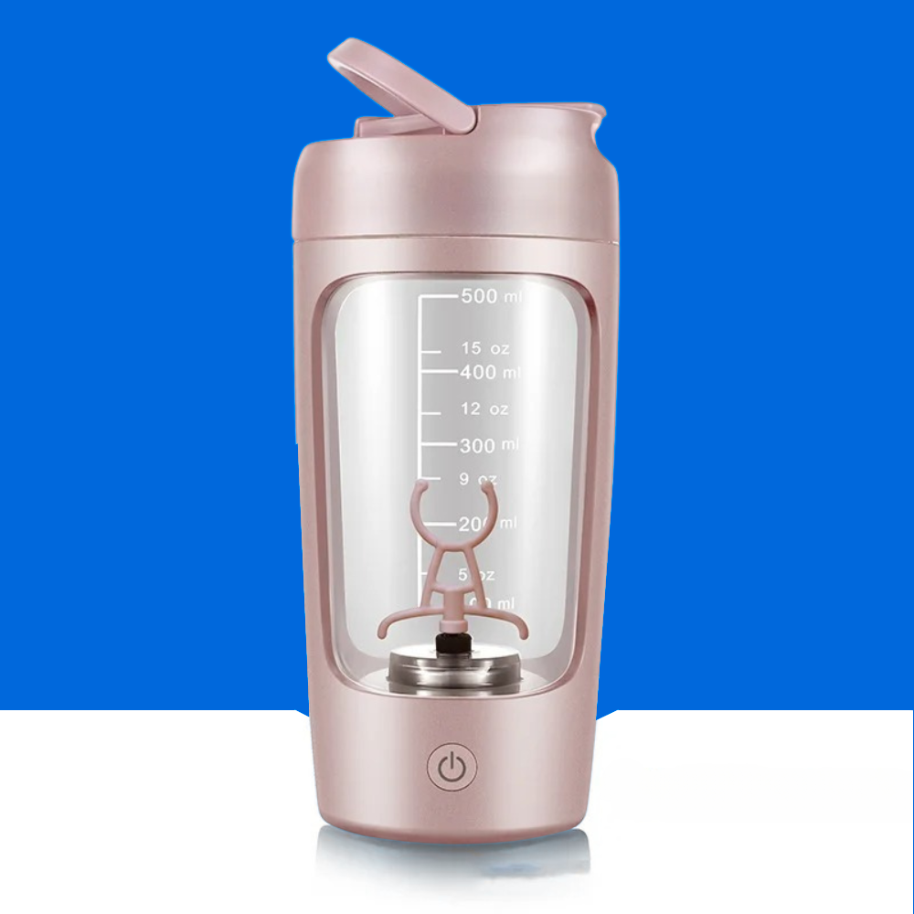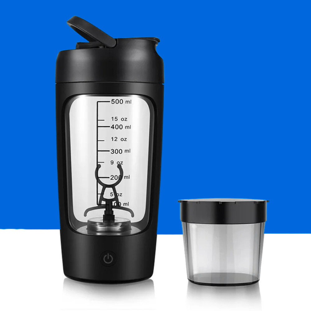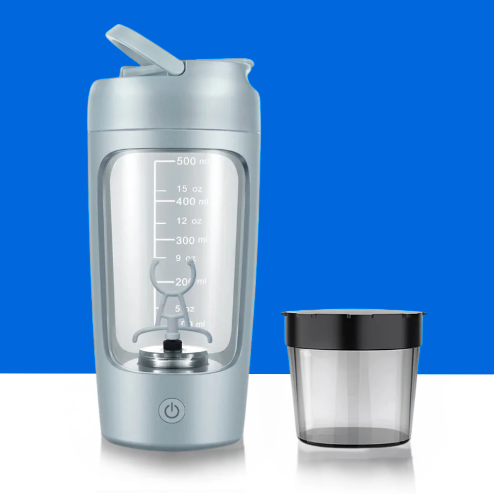 Die Anwendung ist ziemlich simpel Vor der ersten Nutzung, den Shaker gründlich reinigen. Fülle deine Zutaten in die Flasche, verschließe sie fest und drücke den Ein-/Ausschalter 2 Sekunden lang gedrückt, um die Mischung zu starten. Mische für 15-20 Sekunden und überprüfe die Konsistenz. Nach Gebrauch kannst du die Flasche reinigen und an der Luft trocknen lassen. Bei leerem Akku einfach mit dem USB-Kabel aufladen!